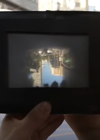 - Aponte a lente para uma região bem iluminada, e observe a imagem se formando no papel vegetal, se precisar arrumar a nitidez da imagem, é só puxar ou empurrar o tubo (sem que ele saia por completo da caixa), assim você ajusta o foco, tanto para objetos mais distantes quanto mais próximos.