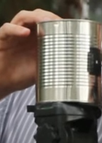 - Com toda a lata fechada encontre um lugar para tirar a foto e deixe a lata com furo apontado para o lugar que deseja fotografar. É importante que a câmera fique apoiada em superfície fixa, qualquer movimento pode deixar sua foto borrada.