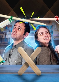 Construção de bonecos feitos de pedaços de lápis e linha, que parecem lutar com movimentos aleatórios enquanto são controlados por baixo da mesa onde estão apoiados.