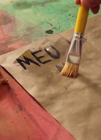 Utilizando um pincel, passe essa mistura meio marrom pelo papel! Assim você vai revelar a mensagem que estava escrita. A mensagem aparecerá em um tom escuro, entre o roxo e azul.